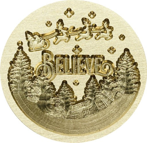 Believe - Santa, Sleigh and Reindeer Wax Seal Stamp Head, 1.2" diameter