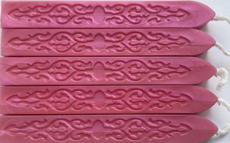 Bright Peony Pink Pearl Sealing Wax (with wick), 5 Sticks, for Unique Wax Seals