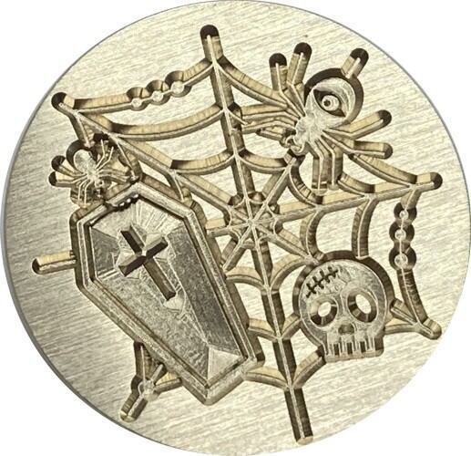 Coffin, Skull, Eyeball & Spider on Spider Web Wax Seal Stamp head - great to use on Party Invitations, Letters and Cards, Tags and Scrapbooks, even Bottles!