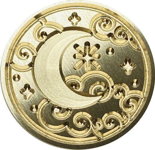 Crescent Moon, Star surrounded by Swirls 1" diameter Wax Seal Stamp head