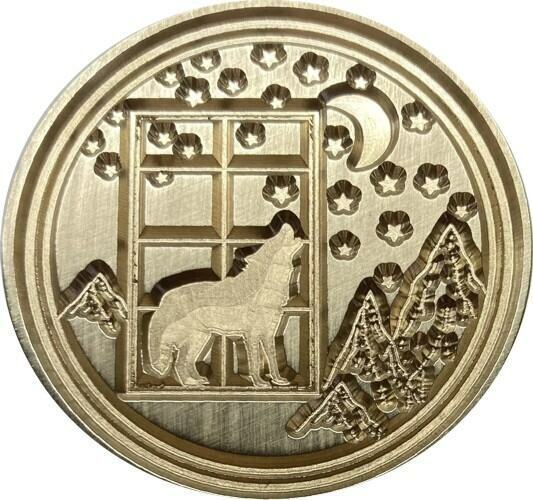 Dog / Wolf in Window, with Mountains, howling at Moon & Stars - Wax Seal Stamp Head