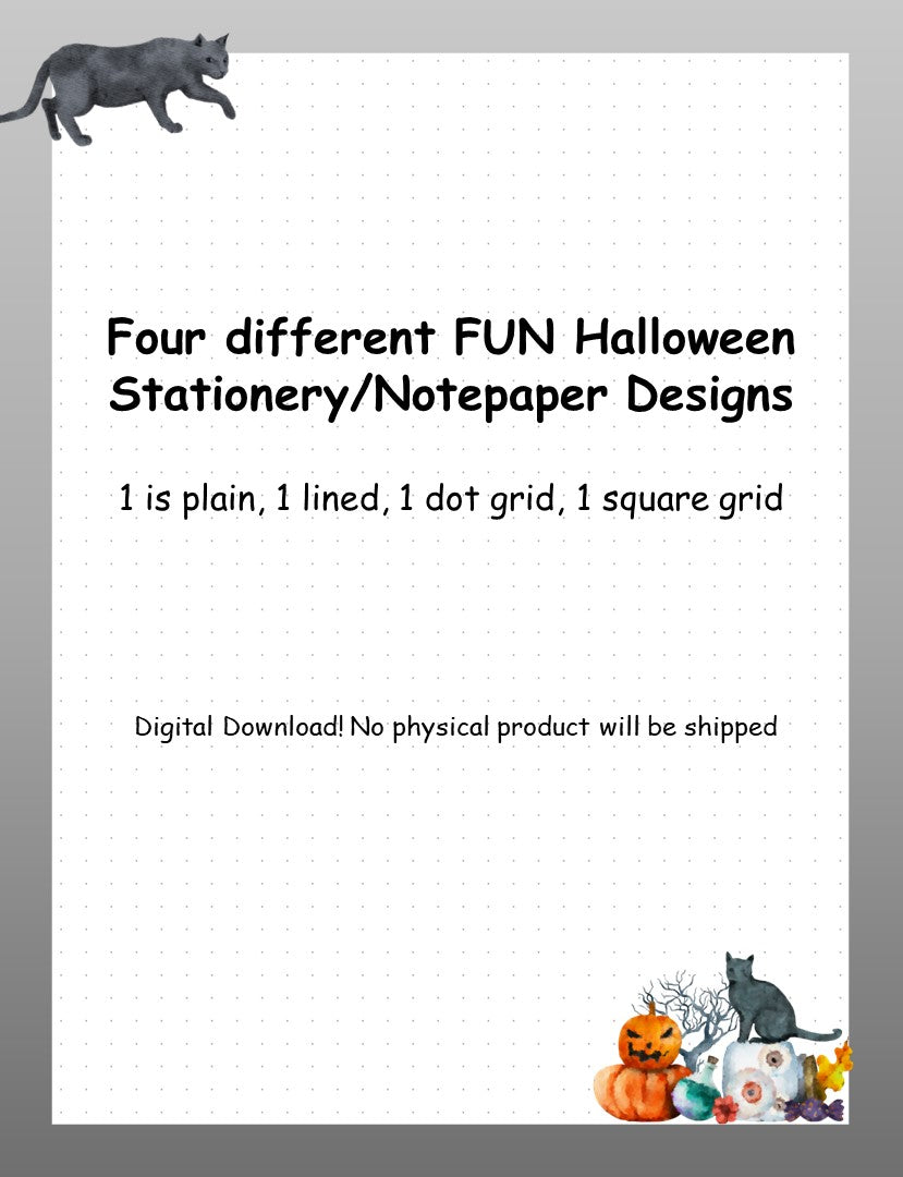 Fun Halloween Notepaper Stationery pack, 4 unique designs (Digital Download)