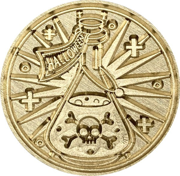 Glass Flask / Beaker with Liquid Inside, Skull & Crossbones on Front - Wax Seal Stamp head for Halloween!