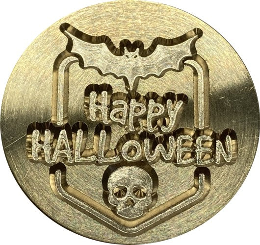 Happy Halloween 'Badge' with Bat and Skull - Wax Seal Stamp Head, 1" diameter