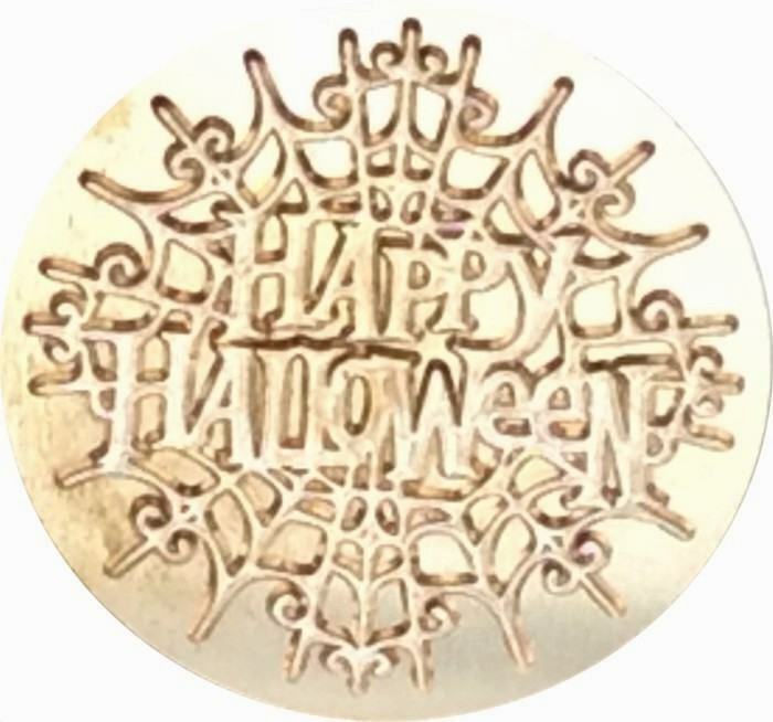 Happy Halloween Superimposed on Elegant Spider Web - 1.2" diameter Wax Seal Stamp Head