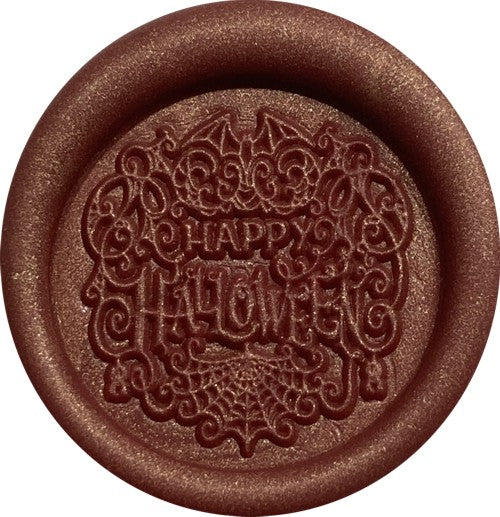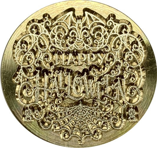 Happy Halloween superimposed on Intricate Web with Bat at the top - Wax Seal Stamp Head, 1" diameter