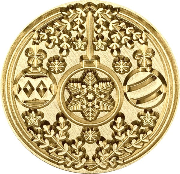 Ornaments and Snowflakes inside Greenery Border - Wax Seal Stamp head