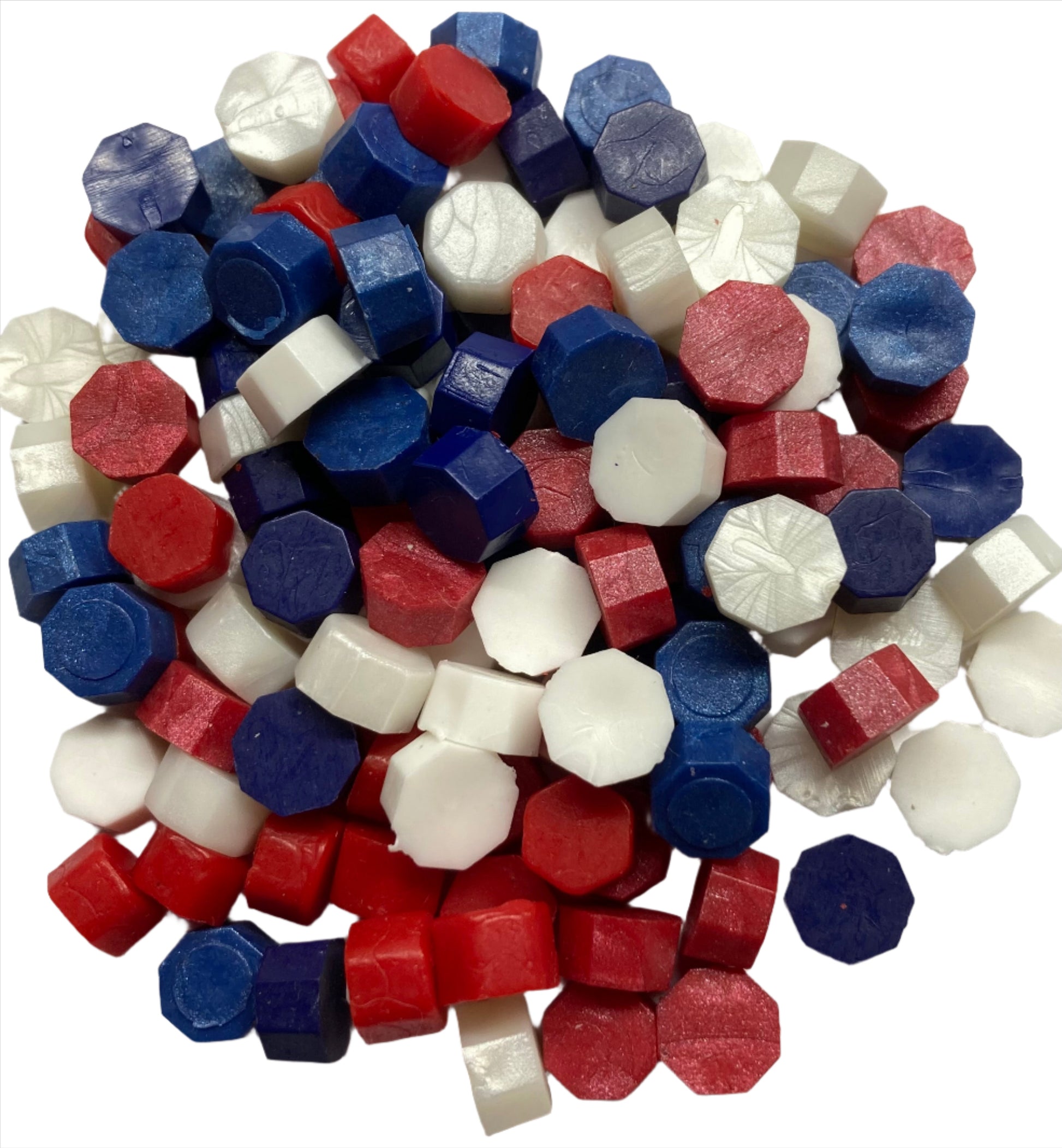 Red, White and Blue Sealing Wax Color Mix - solid and pearl colors. Approximately 250 total beads are included in this fun color mix. Use a single color, or combine multiple colors to make each of your wax seals unique!