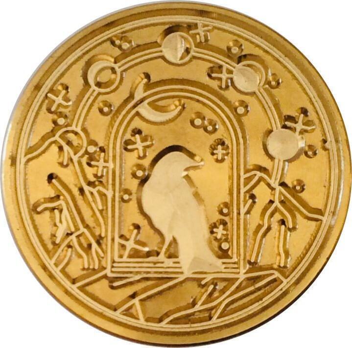 Raven sitting in Arched Window, Moon Phases Above - 1.2" diameter Wax Seal Stamp