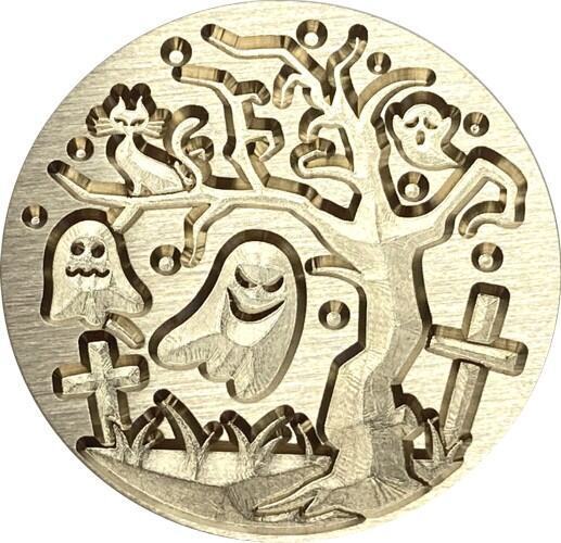 Scary Ghosts under Tree in Cemetery (cat in tree!) - 1" dia. Wax Seal Stamp head